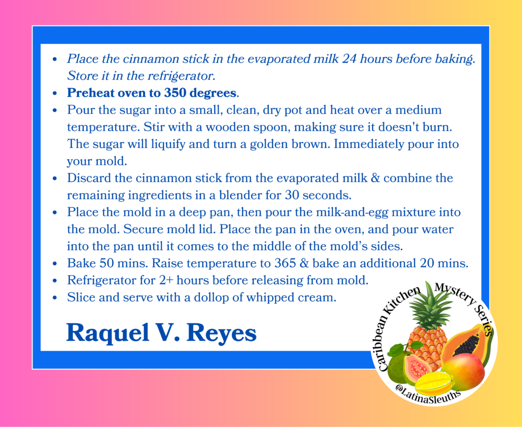 This flan recipe from Calypso, Corpses, and Cooking CKM#2